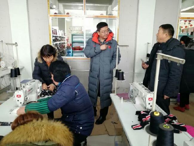 副县长史展翔在祝家园村纺纱扶贫车间现场考察