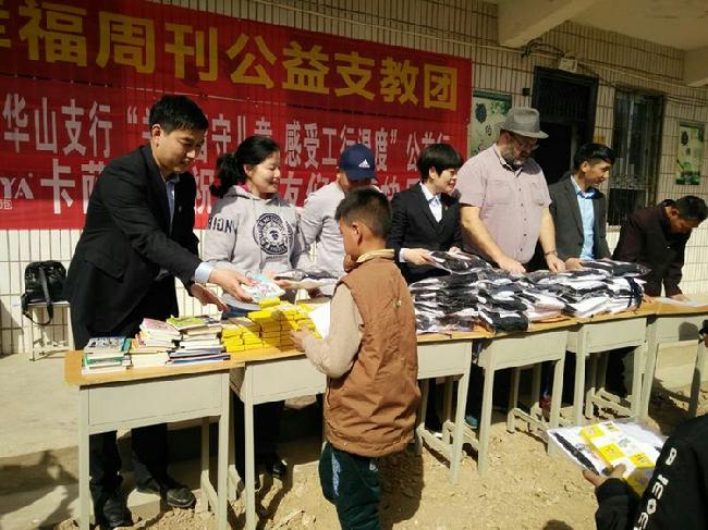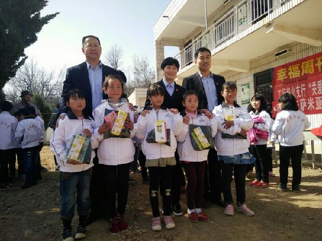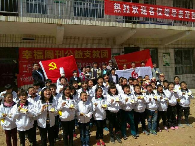 3月27日,洛阳晚报幸福周刊公益支教团联合洛阳市助学济困联合会爱心书屋项目部、卡萨米亚食品有限公司、洛阳工商银行华山支行、洛阳枫叶国际学校走进大山深处——洛宁县上戈镇里石头小学开展献爱心送温暖活动。