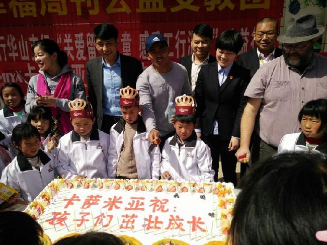 活动中,洛阳工商银行华山支行为里石头小学45名学生购置了校服;来自菲律宾的枫叶国际学校外教为同学们带来了一堂生动的英语课;卡萨米亚食品有限公司为孩子们准备了生日蛋糕,并和三个同学一起过了一个特殊的生日。